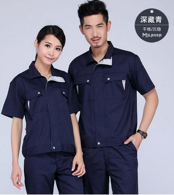 JL-XJ113夏季工作服主色為藏青色配淺灰色,主色為深灰色配淺灰色高品質全新形象,經典設計,立體裁剪,時尚翻領,質感有型。走線細致,實用性強。插袋撞色拼接,雙明線縫制既時尚又耐用,即使在下班之余也可以穿。